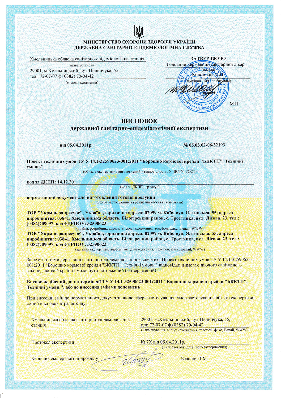 Основні показники згідно ТУ У 14.1-32590623-001:2011